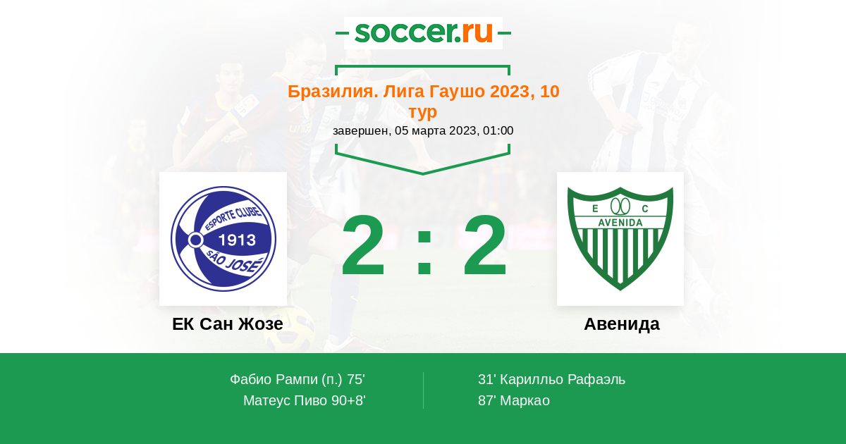 Протокол матча ЕК Сан Жозе против Авенида