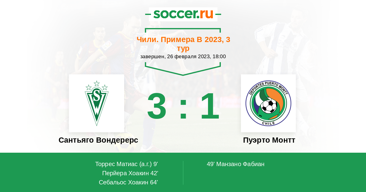 Протокол матча Сантьяго Вондерерс против Пуэрто Монтт
