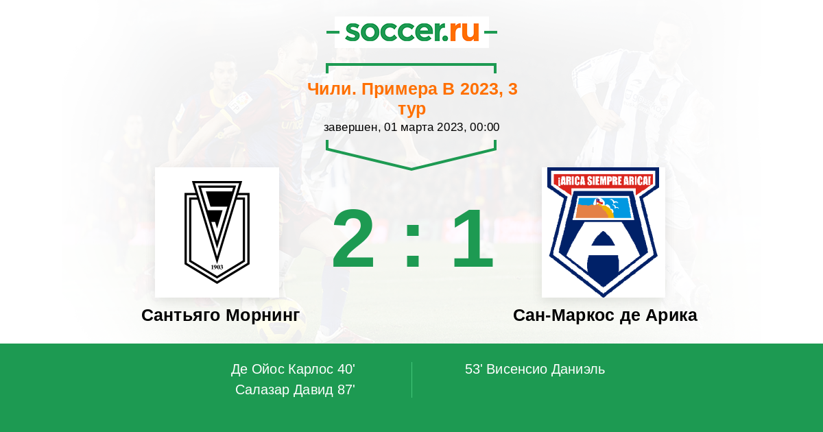 Протокол матча Сантьяго Морнинг против Сан-Маркос де Арика