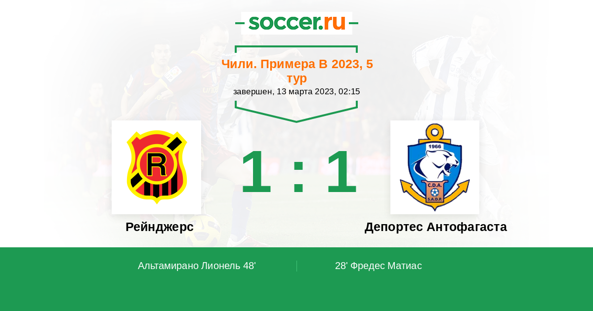 Протокол матча Рейнджерс против Депортес Антофагаста