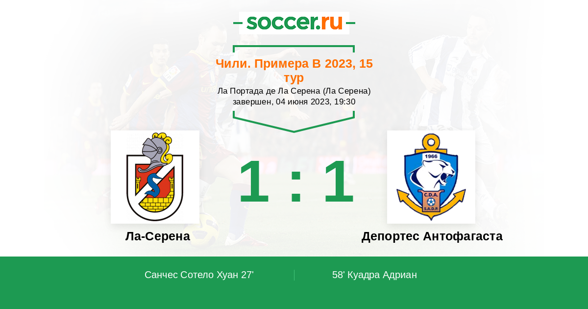 Протокол матча Ла-Серена против Депортес Антофагаста