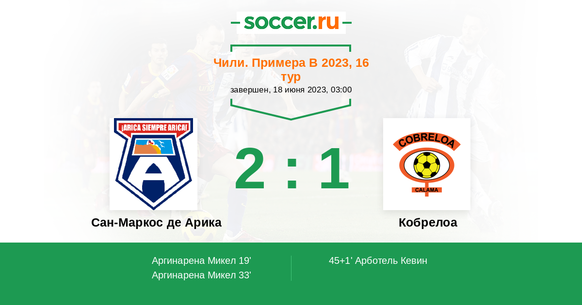 Протокол матча Сан-Маркос де Арика против Кобрелоа
