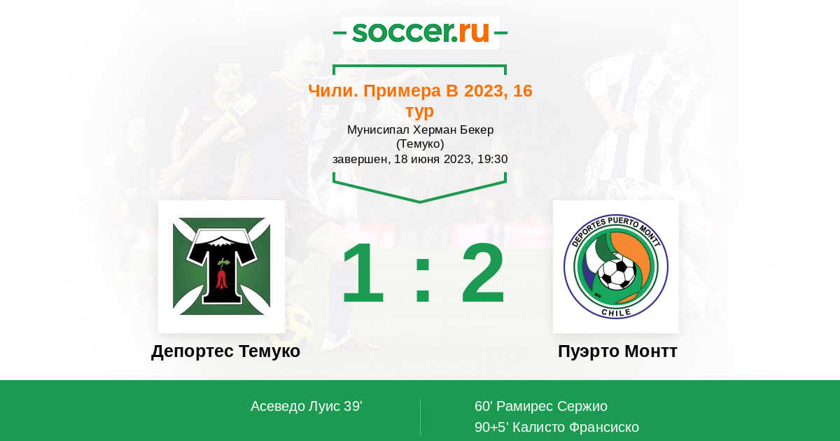 Протокол матча Депортес Темуко против Пуэрто Монтт