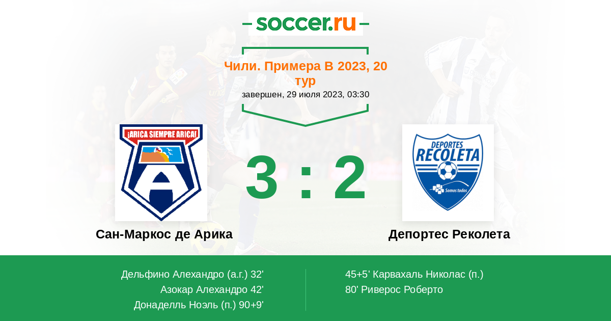 Протокол матча Сан-Маркос де Арика против Депортес Реколета