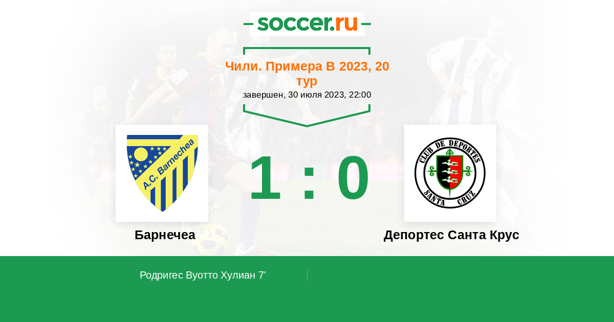 Протокол матча Барнечеа против Депортес Санта Крус