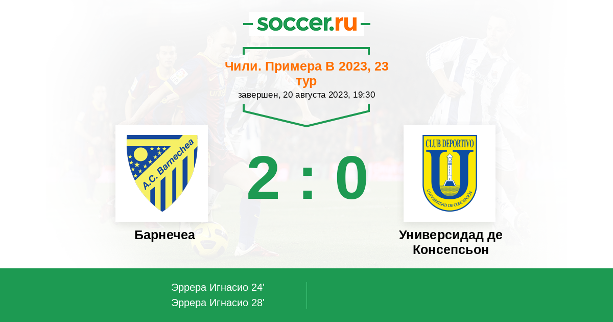 Протокол матча Барнечеа против Универсидад де Консепсьон