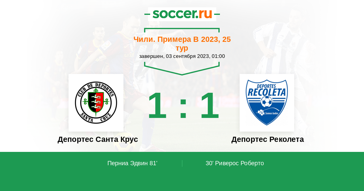 Протокол матча Депортес Санта Крус против Депортес Реколета