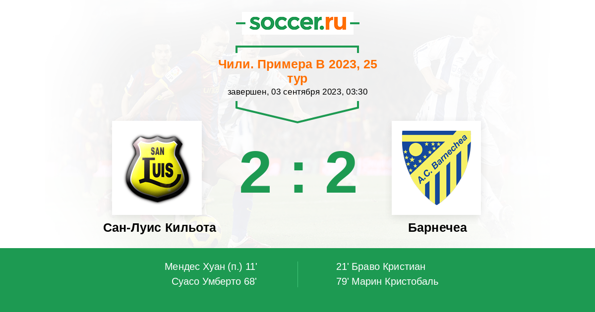 Протокол матча Сан-Луис Кильота против Барнечеа