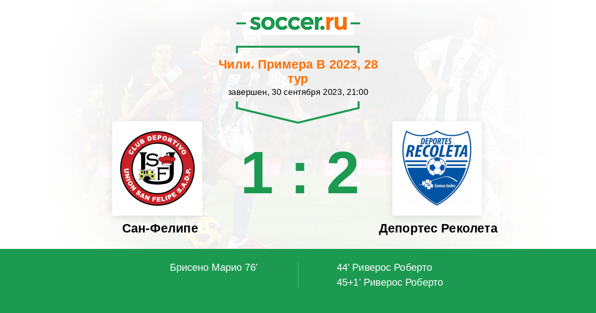 Протокол матча Сан-Фелипе против Депортес Реколета
