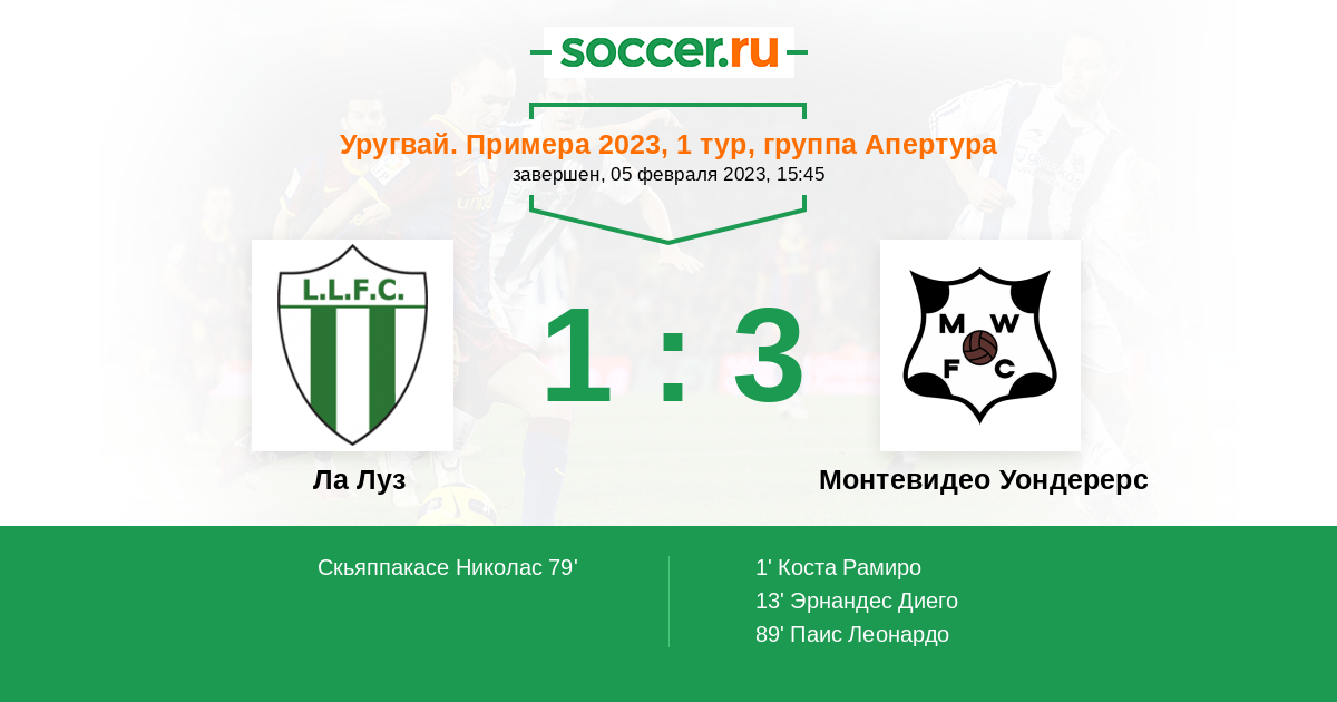 Протокол матча Ла Луз против Монтевидео Уондерерс