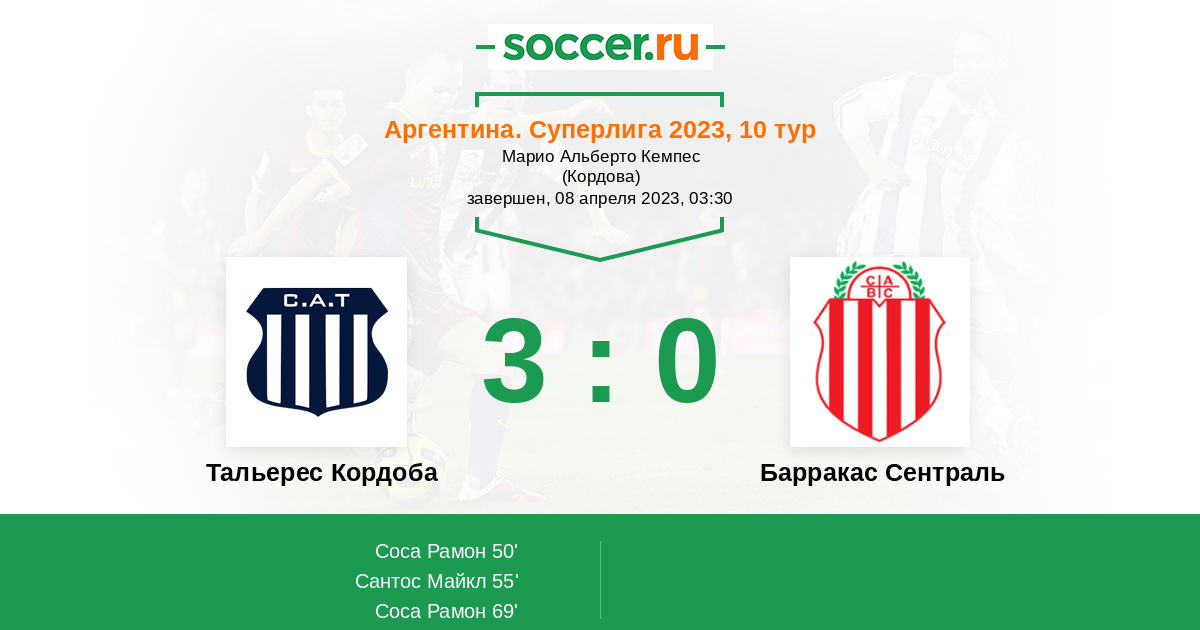 69' (3:0) Соса Рамон (24) (Гарро Родриго (16))