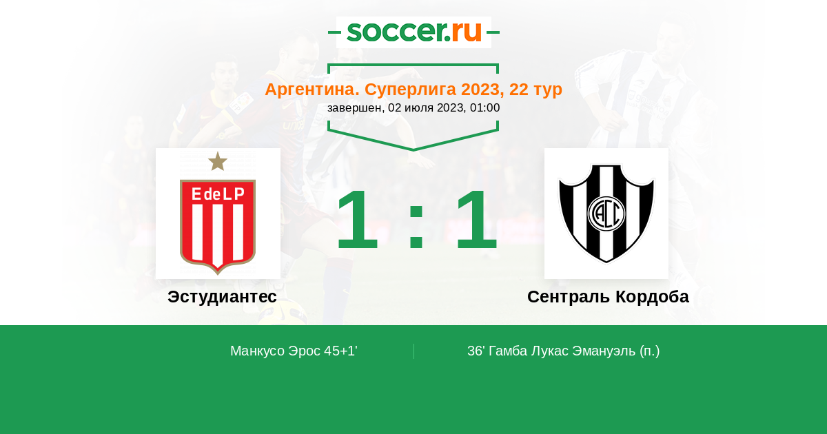 Протокол матча Эстудиантес против Сентраль Кордоба