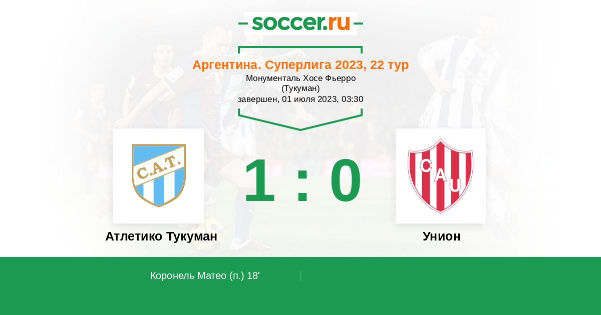 Протокол матча Атлетико Тукуман против Унион