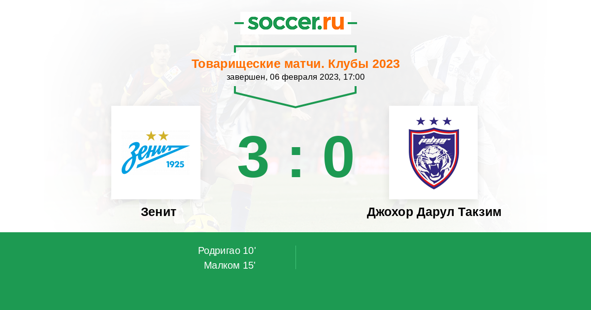 Протокол матча Зенит против Джохор Дарул Такзим