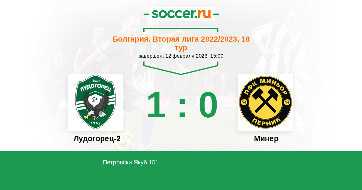 Протокол матча Лудогорец-2 против Минер