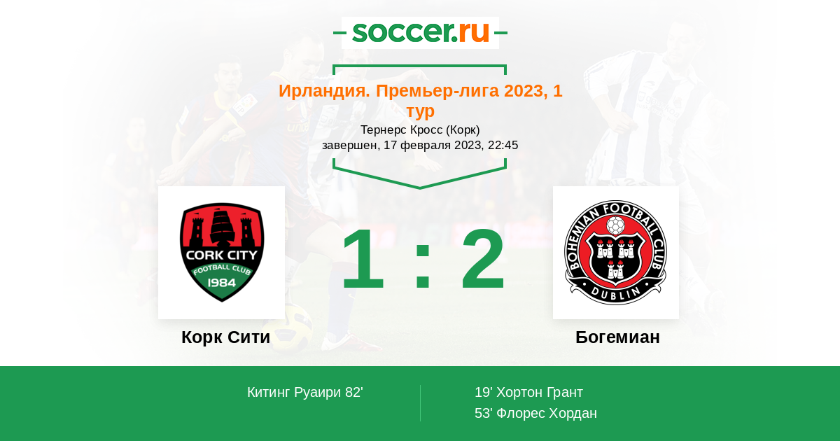 Протокол матча Корк Сити против Богемиан