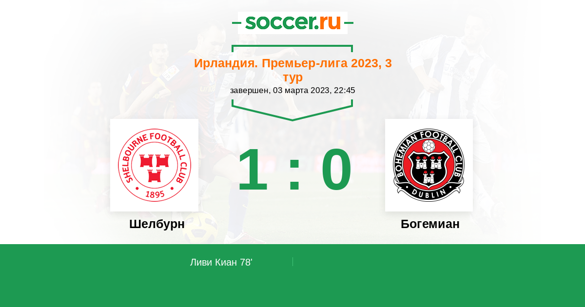Протокол матча Шелбурн против Богемиан