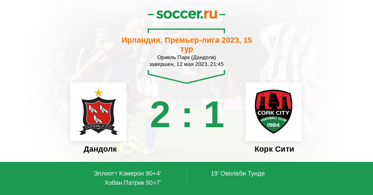 Протокол матча Дандолк против Корк Сити