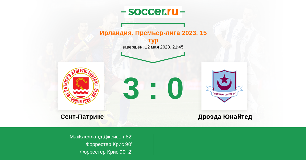 Протокол матча Сент-Патрикс против Дроэда Юнайтед