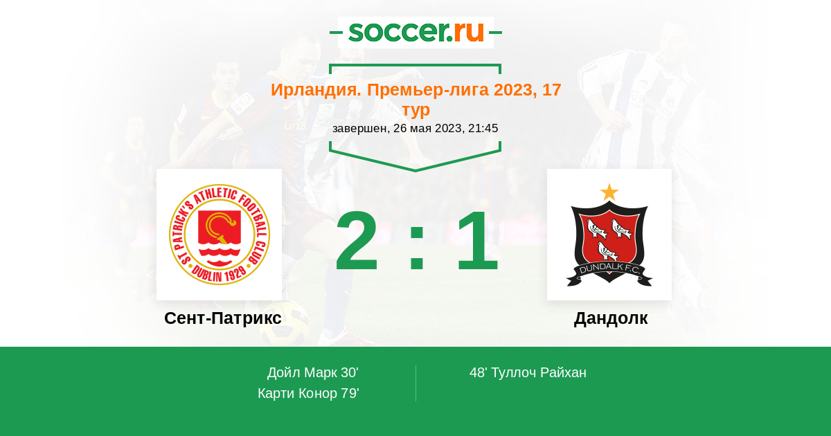 79' (2:1) Карти Конор (15) (Лонерган Том (10))