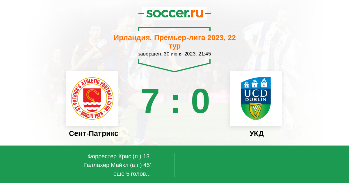 Протокол матча Сент-Патрикс против УКД