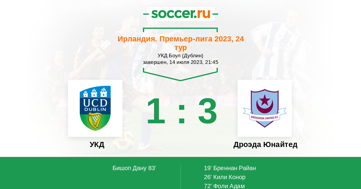 Протокол матча УКД против Дроэда Юнайтед