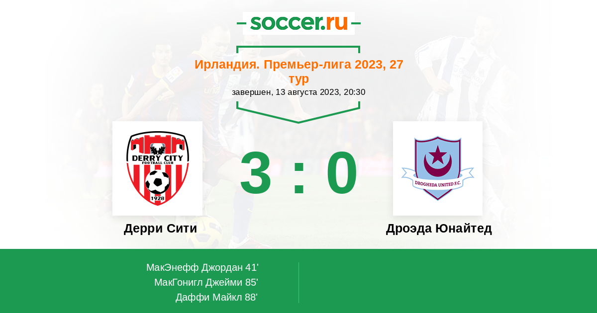 Протокол матча Дерри Сити против Дроэда Юнайтед