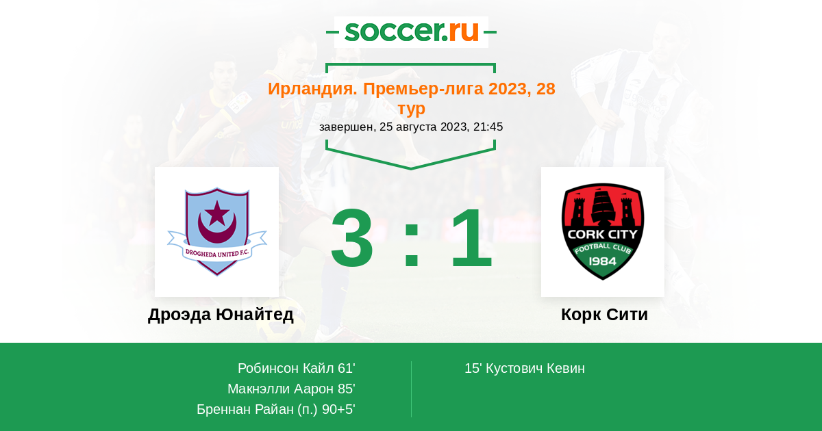 Протокол матча Дроэда Юнайтед против Корк Сити