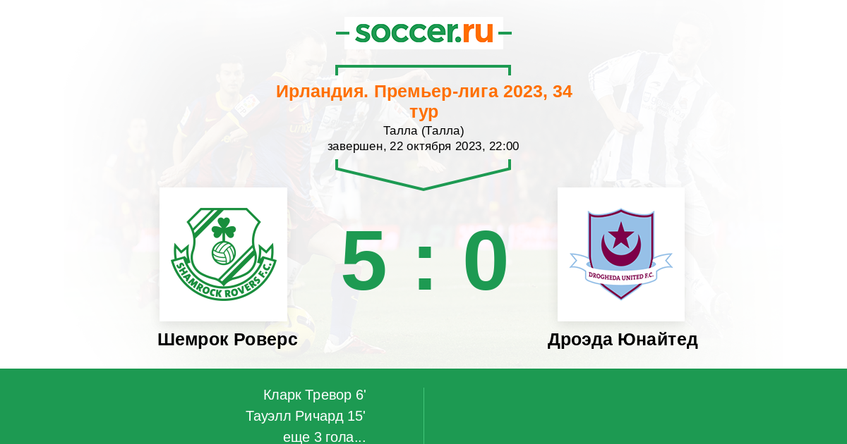 Протокол матча Шемрок Роверс против Дроэда Юнайтед