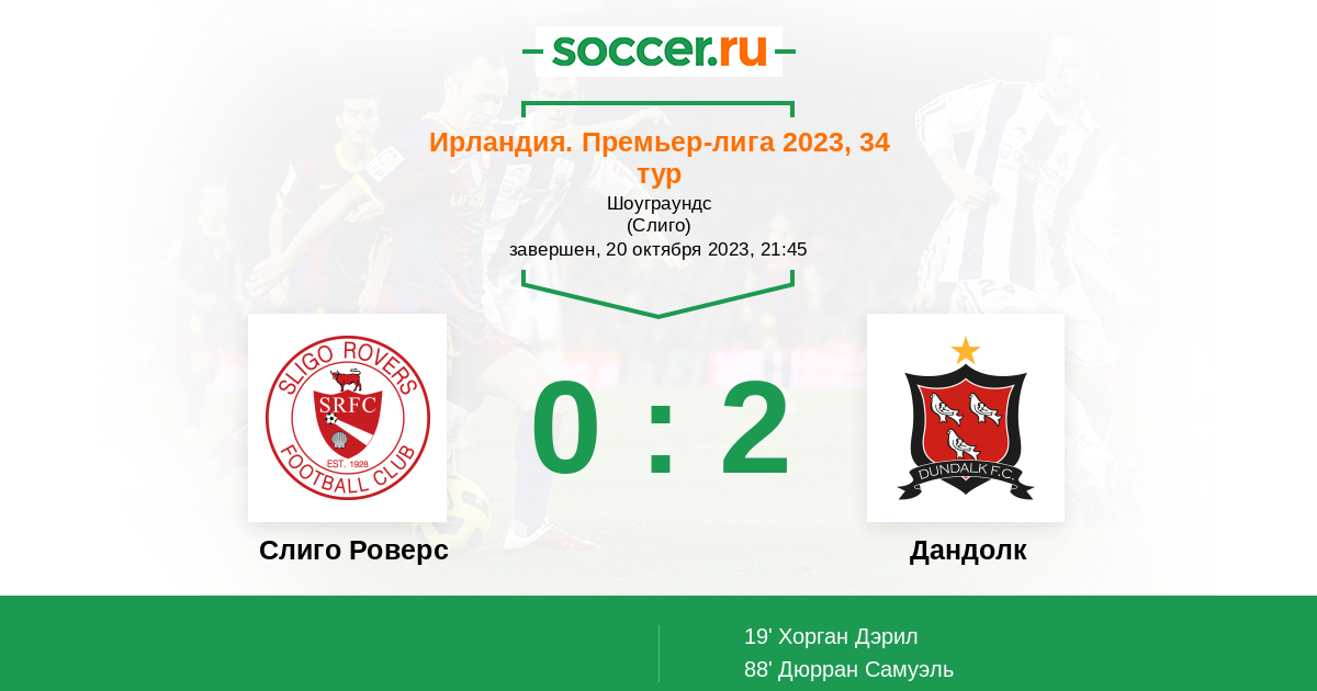 Протокол матча Слиго Роверс против Дандолк
