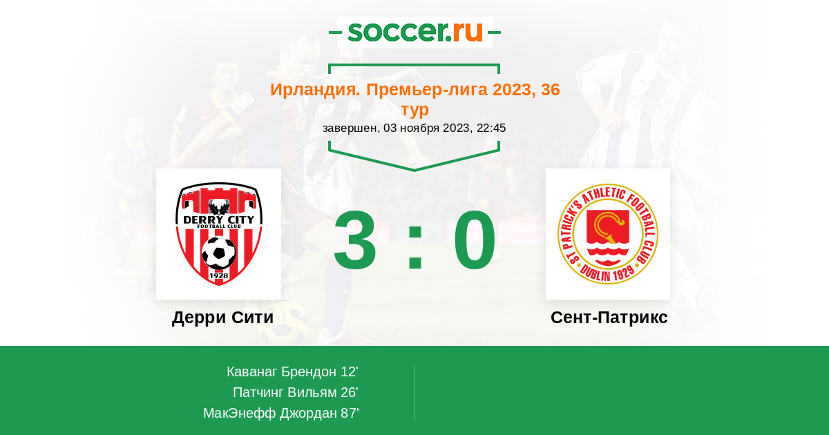 Протокол матча Дерри Сити против Сент-Патрикс