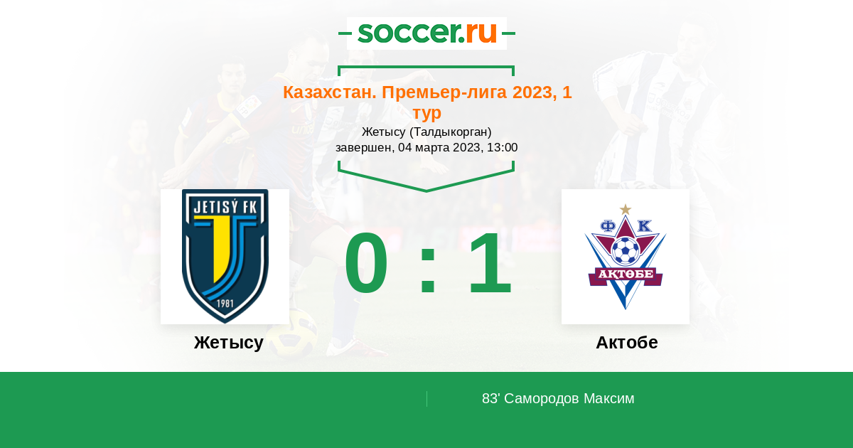 Я думаю что в этом противостоянии более чем явным фаворитом на победу является команда гостей Актобе , один из лидеров чемпионата Казахстана Премьер-Лиги . А вот команда хозяев поля Жетысу , которая вернулись в премьер лигу в этом сезоне наврядли сможет конкурировать на равных и отобрать у гостей очки .