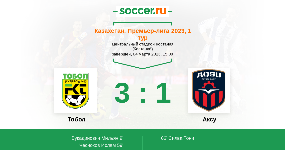 Протокол матча Тобол против Аксу