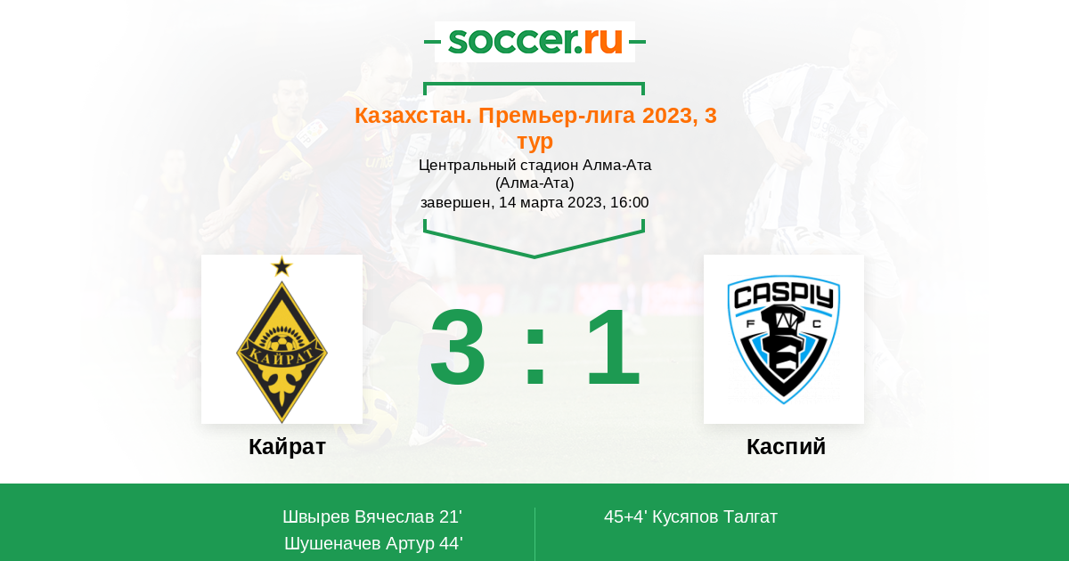 Протокол матча Кайрат против Каспий