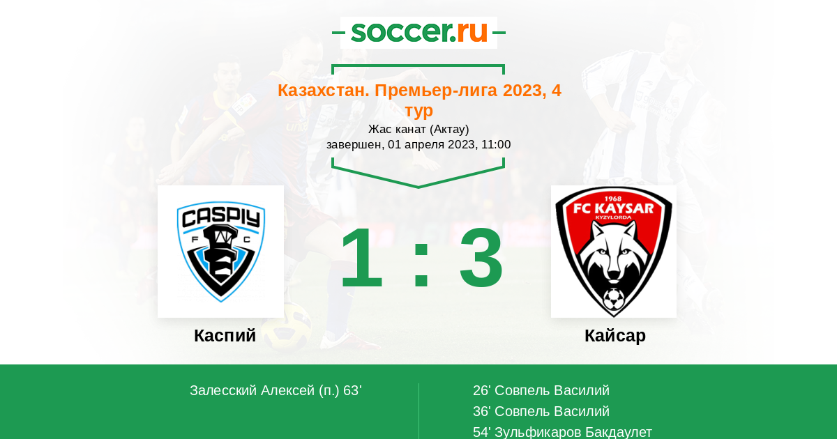 Протокол матча Каспий против Кайсар