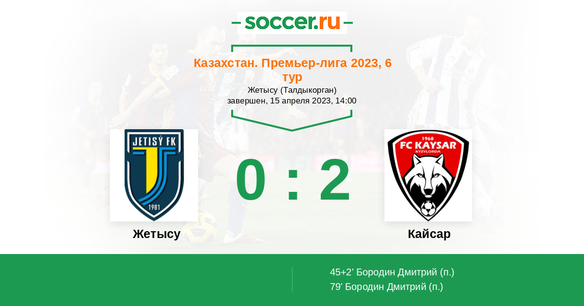 Протокол матча Жетысу против Кайсар