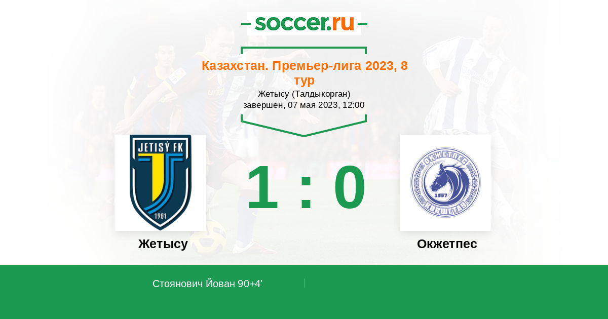 Протокол матча Жетысу против Окжетпес