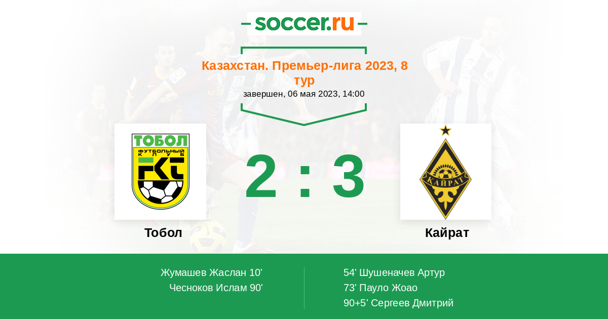 Протокол матча Тобол против Кайрат