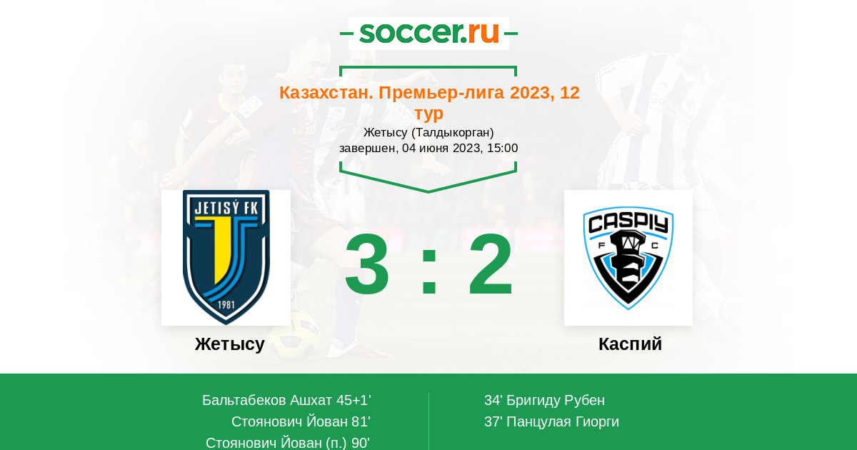 Протокол матча Жетысу против Каспий