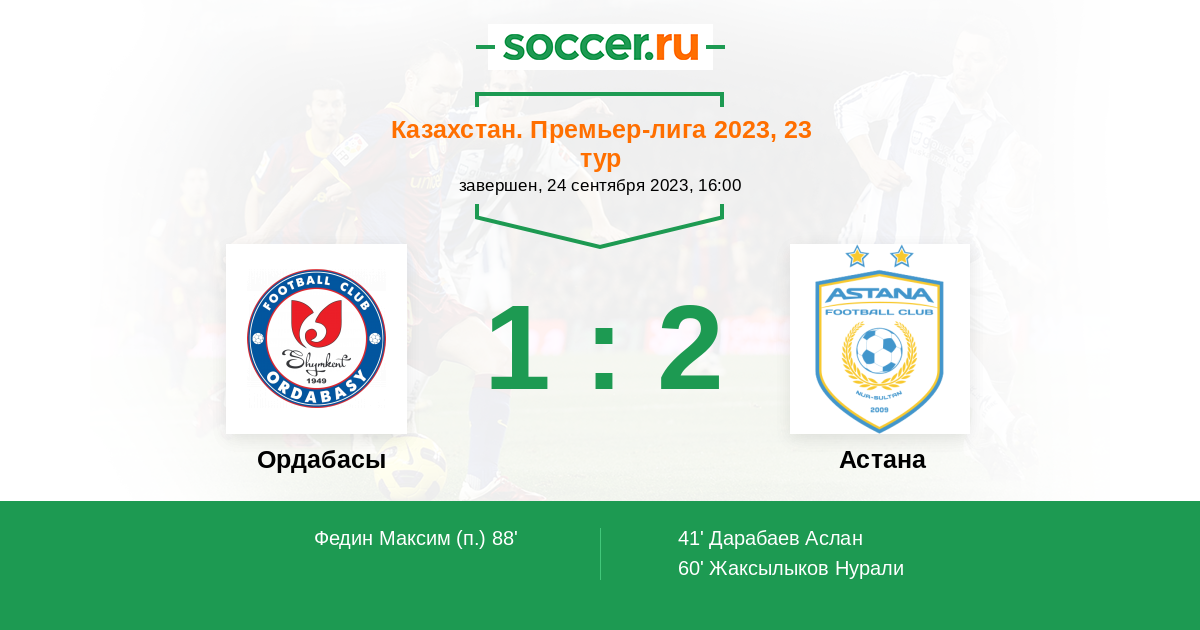 Протокол матча Ордабасы против Астана