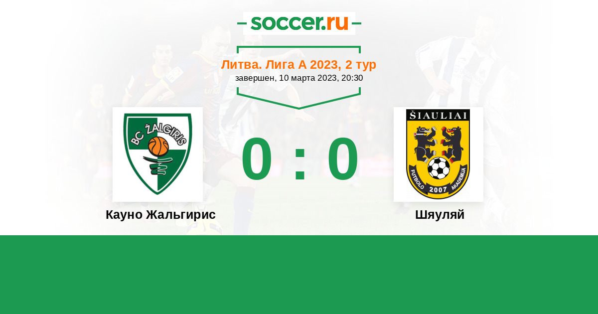 Протокол матча Кауно Жальгирис против Шяуляй