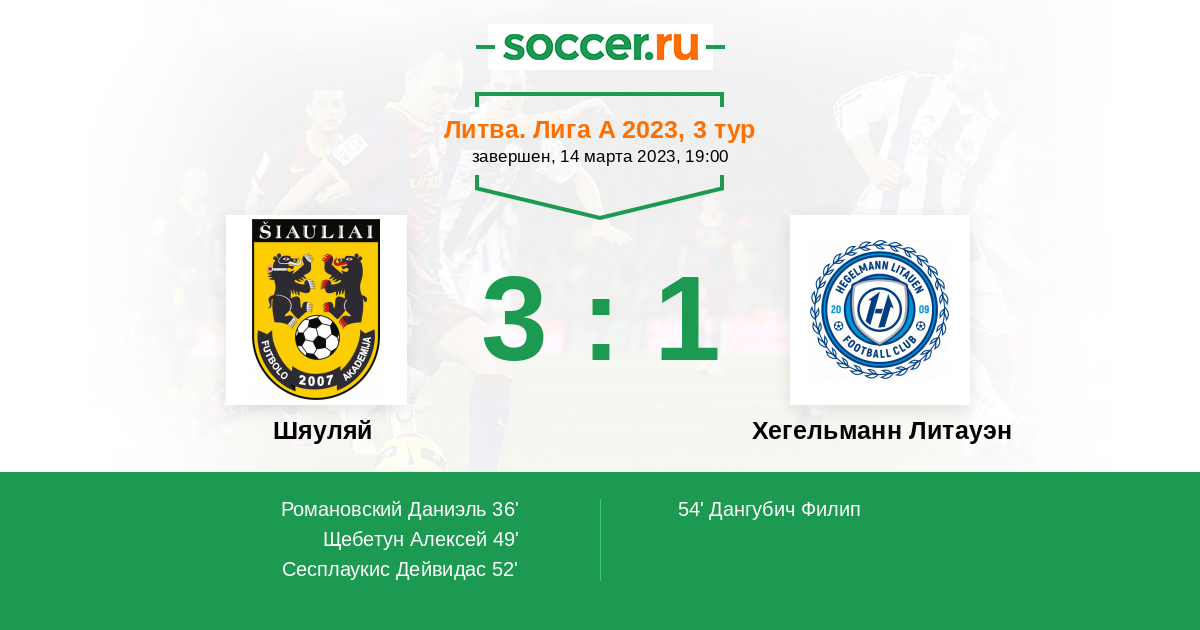 Протокол матча Шяуляй против Хегельманн Литауэн