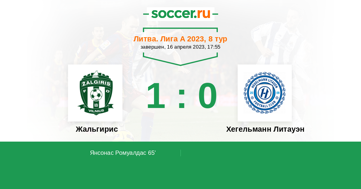 65' (1:0) Янсонас Ромуалдас (23)