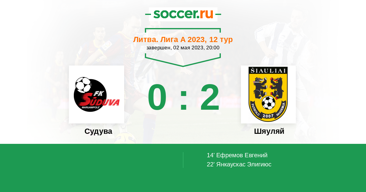 Протокол матча Судува против Шяуляй