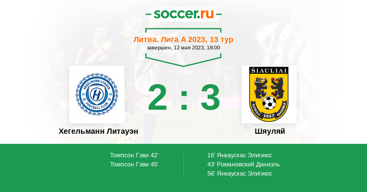 Протокол матча Хегельманн Литауэн против Шяуляй