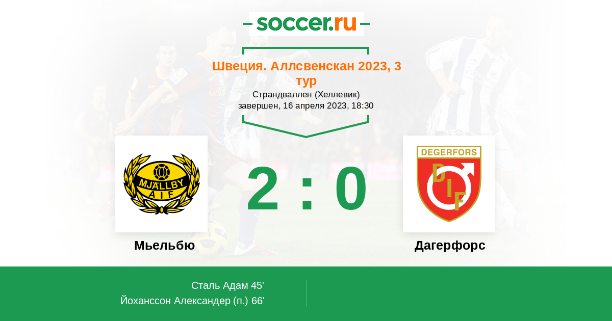66' (2:0) Йоханссон Александер (16)