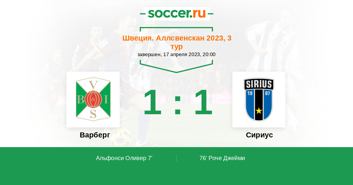 Протокол матча Варберг против Сириус