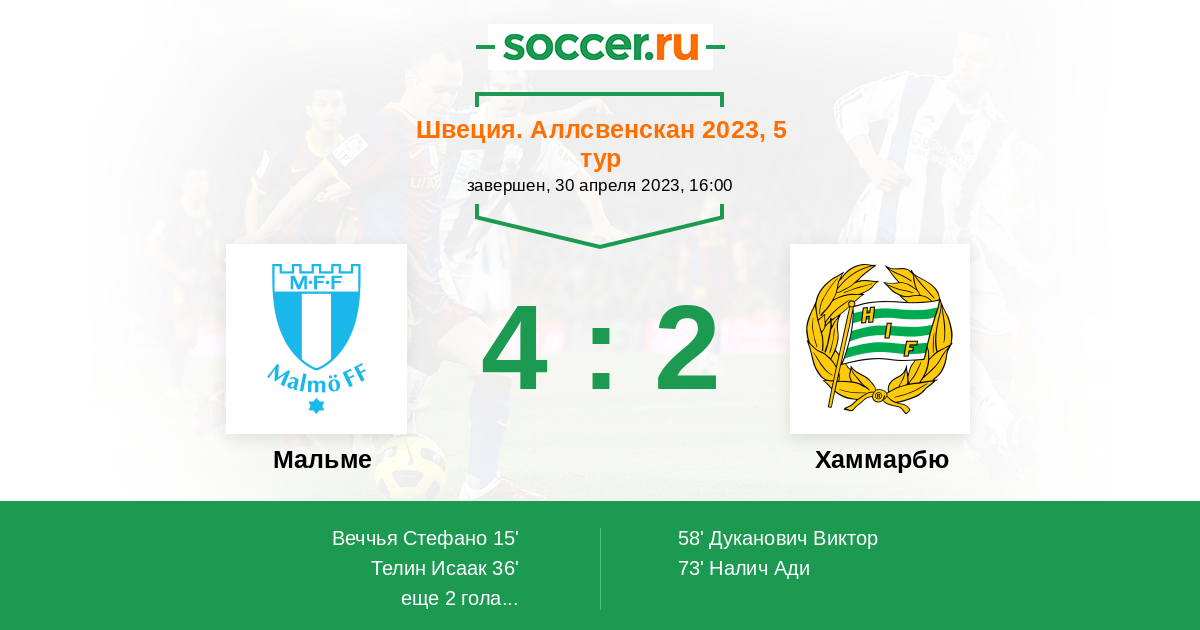 Протокол матча Мальме против Хаммарбю