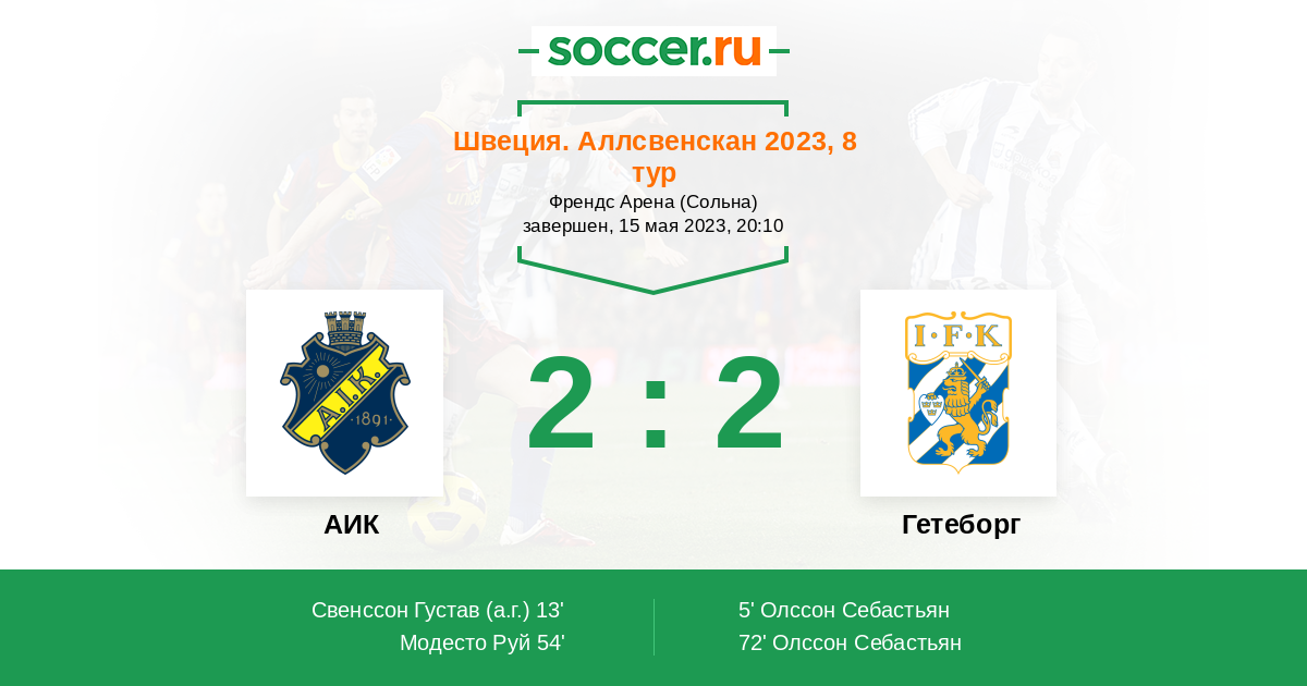 Протокол матча АИК против Гетеборг