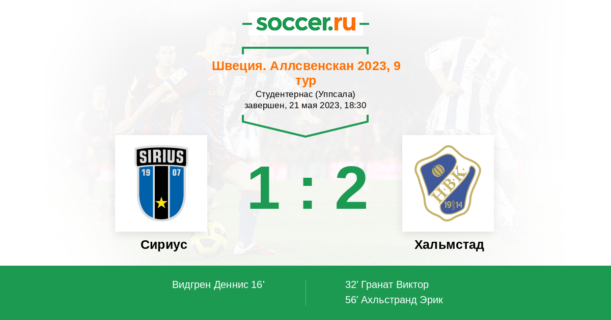 32' (1:1) Гранат Виктор (9) (Карлссон Каспер (7))